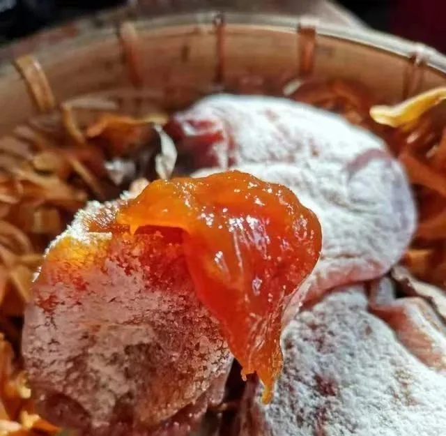 蝉鸣盛夏,酷热难耐,但从冷库中刚拿出的柿饼却洒满了柿霜,冒着丝丝凉气……