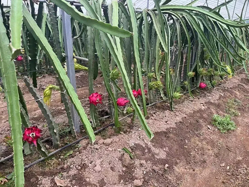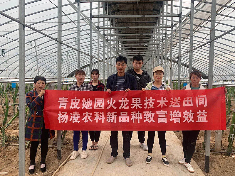 杨凌青皮她园火龙果种植基地总面积155 亩。从2013年试种到2018年大规模建棚,充分发挥了示范带动作用,在全国推广火龙果种植技术。基地联合有关学院专家,针对西北市场培育出了多个耐旱型、品质高的火龙果品种。其中火龙果新品种“秦红龙”入选2022年度省级林木良种名录。