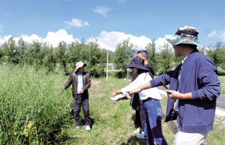 油菜种质资源创新及遗传育种团队在拉萨的试验田查看新品种油菜长势。 受访者供图