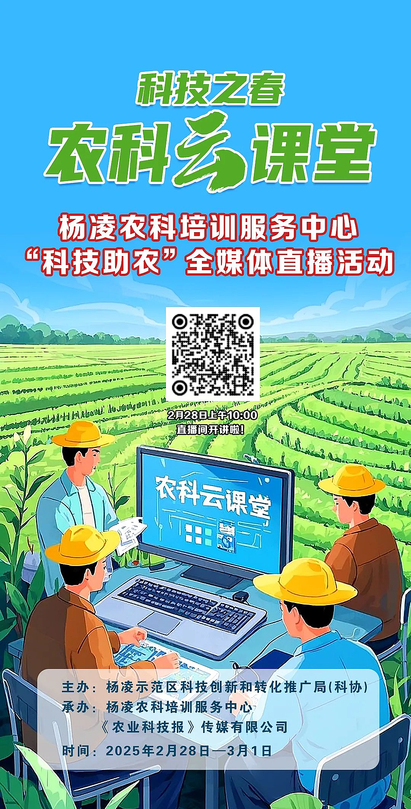 农时不等人,云上备耕忙。2月28日—3月1日,在第三十二届杨凌农高会春季分会暨第十七届西部(杨凌)农资苗木交易会期间,由杨凌示范区科技创新和转化推广局(科协)主办,杨凌农科培训服务中心、《农业科技报》传媒有限公司承办的“科技之春·农科云课堂”将在会期正式开课,助力农民“线上备耕”。