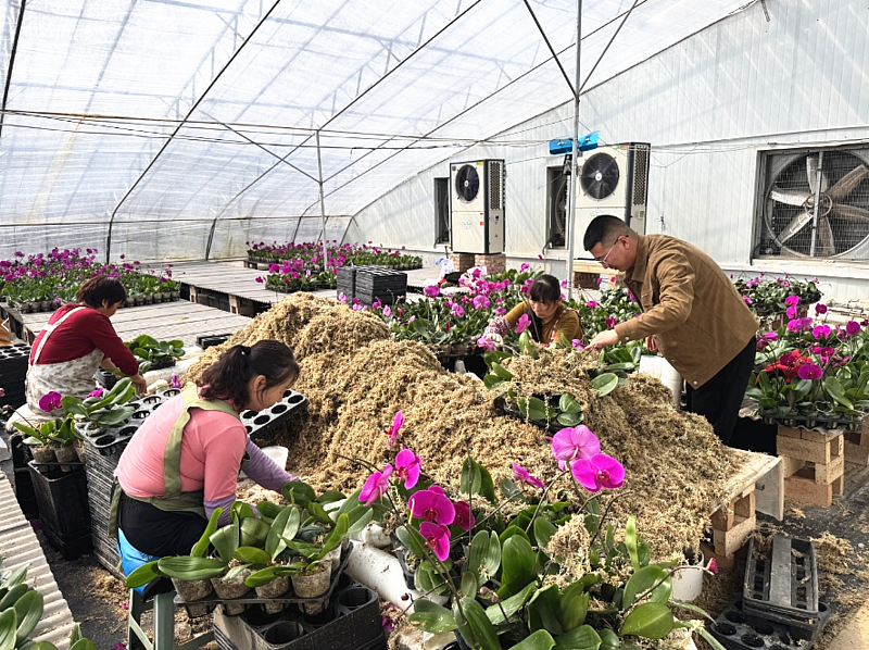 “以前村里种植苗木和猕猴桃,规模小、效益低,2024年基地销售年宵花20万株,销售额突破600万元,产品远销新疆、甘肃等地。”基地负责人谈晨向记者介绍转型之路。通过"村集体+农户+公司+高校"模式,将58亩土地变成科技试验田,智慧温控系统精准调节温湿度,西农大专家驻点攻克育种难题,线上线下融合打通全国市场。