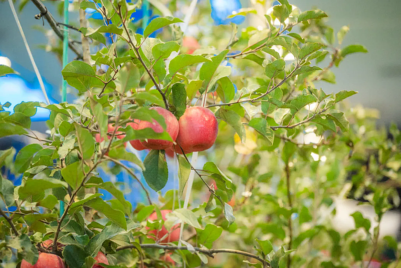 陕西苹果板块用“实景果园”形成最具特色的沉浸式体验区——温度、湿度、光照1:1还原果园环境,观众伸手就能触碰,从花蕾初展到果实满枝,感受自然的生动韵律。抬头可见无人机模拟喷洒生物农药,30秒“时空廊道”,通过先进的光影技术与场景交换,看尽四季更迭,仿佛置身“苹果元宇宙” 。