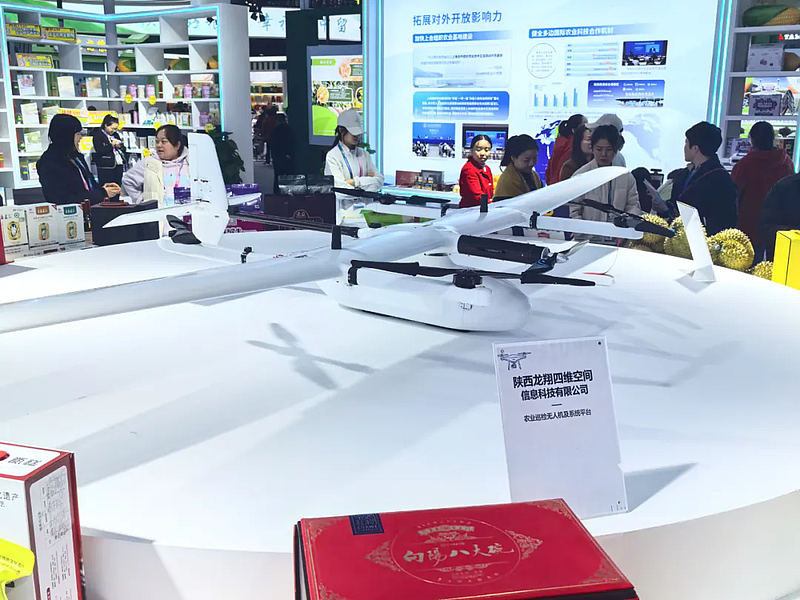 以前种地靠经验,现在种地靠数据。在农高会的展示台前,西北农林科技大学教授、陕西龙翔四维空间信息科技有限公司的董事长耿宏锁正指着身旁的农业巡检无人机介绍:“智慧农业不可能一个设备搞定,需要多种设备协同工作。我们的农业巡检无人机,堪称农田侦察兵!‘天眼’系统,让每寸土地都透明!”