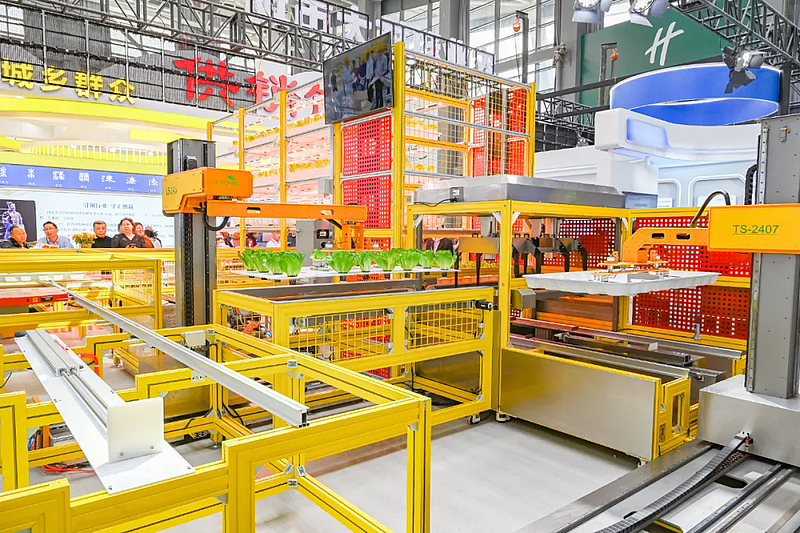 在珠海益品农业科技有限公司的无人化植物工厂里,蔬菜住着“高楼”,享受着LED全光谱光照和精准定制的营养液。这里没有农民,只有一套高效的自动化系统:从自动播种、智能育苗,到机器人定植、AGV小车运输,再到机械臂采收与自动包装,实现了从种苗到商品菜的全流程无人化生产。