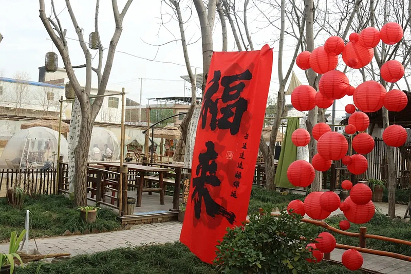 仲冬时节,杨陵区揉谷镇田西村“艺舍别院”乡村民宿暖意升腾,院内“福来”二字艺术条幅格外醒目。