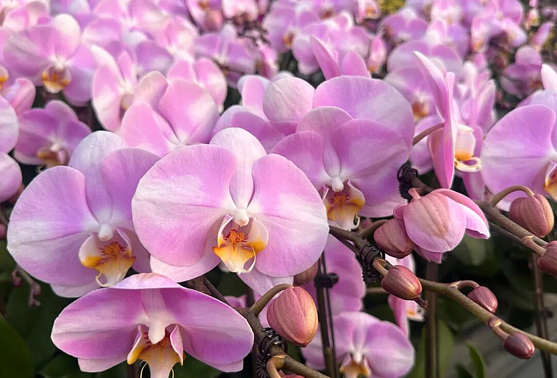 寒冬清晨,揉谷镇陵湾村的蝴蝶兰智能温室里暖意融融。数万株蝴蝶兰亭亭玉立,工作人员正娴熟地修整枝叶。“近期,寓意‘鸿运当头’‘紫气东来’的红色系、紫色系品种格外畅销,不少客户专程驱车前来提货。”基地负责人白苗苗言语间满是喜悦,“日均出货量最高可达万株,我们培育的蝴蝶兰已远销西安、兰州、新疆乃至海南等地。”