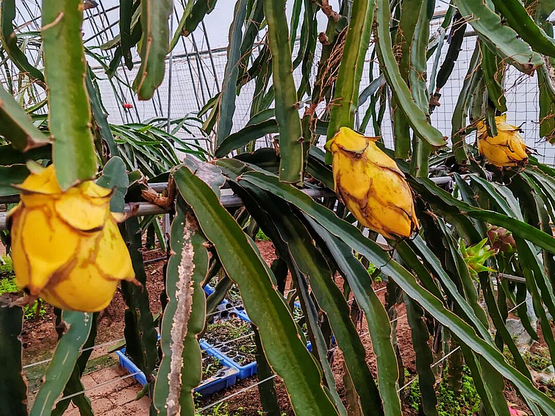 “我们优化大棚结构设计,创新探索‘拱棚双膜’‘拱棚三膜’等适配北方气候的保温模式,有效抵御冬季严寒。”合作社运营经理郭娟茹介绍,通过产学研协同攻关,团队还筛选培育出“秦红龙”“新双色”等抗寒性强、风味优良、适宜北方设施种植的火龙果自主品种,在节水灌溉、标准化栽培及产品深加工等方面取得多项技术成果。