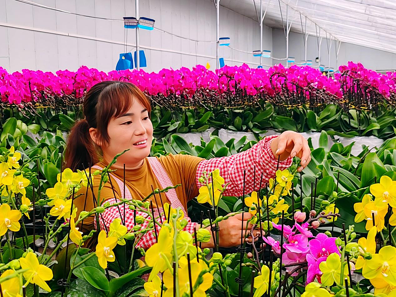 “今年20万株蝴蝶兰被早早订空,各地客商抢着订货,发货节奏一刻不停。”谈晨的话音刚落,打包车间里又传来胶带封装的清脆声响。标准化、订单化生产,让鲜花品质稳定、远销全国,也让现代农业的新质生产力在花田落地生根。