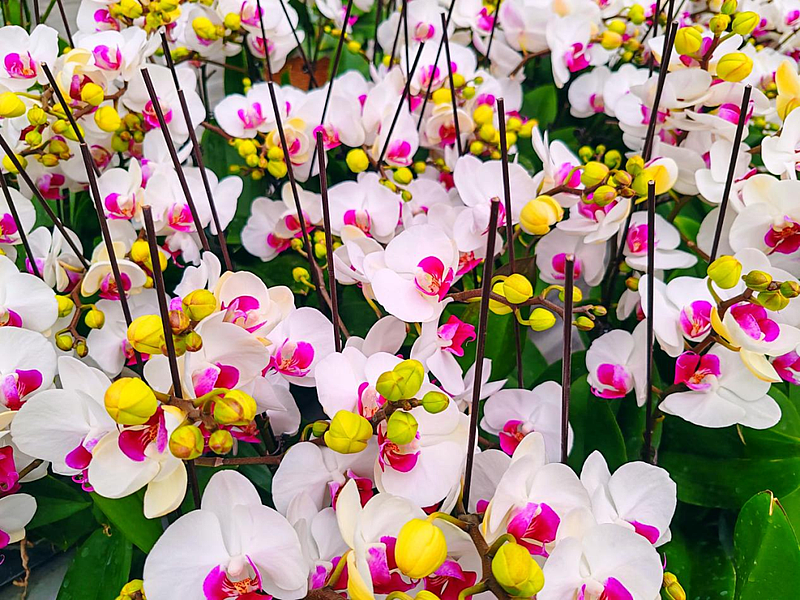 午后三点,揉谷镇陵湾村的蝴蝶兰示范基地里,幽幽花香沁人心脾,20余万株、48个品种的蝴蝶兰竞相绽放,红粉白黄紫交织成海,温室大棚里满是喜庆祥和的气息。