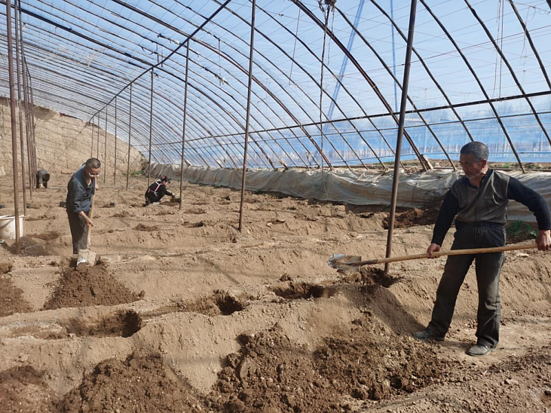 近日,伴着和煦的春风,记者走进西小寨村,伫立在道路旁的温室大棚瞬间吸引了记者的目光。大棚内,负责挖坑、铺基质、栽苗的工人各司其职干得热火朝天,西小寨村党支部书记李创波也撸起袖子加入其中,当起了乡村振兴的“排头兵”。
