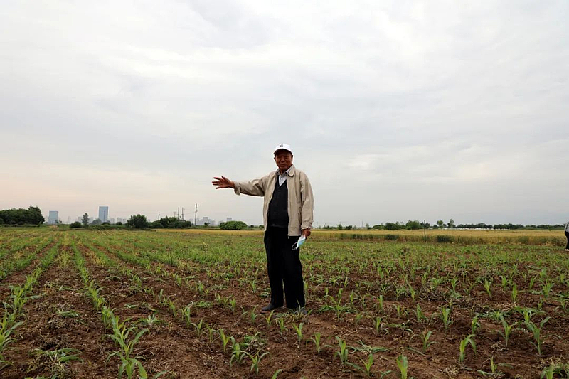 随后,胡老带着记者来到了他的试验田,指着一行行玉米苗告诉记者:“这里每一行都是一种材料。”他说,只要有时间,就会来试验田看看,记录每一个阶段的各类材料的生长特性。