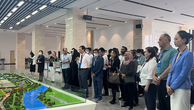 在这里,参观团了解园区数据的生成以及数字化指令输出的全过程。先进的DFT深液流栽培技术以及吊挂式无土栽培模式种植的番茄,让中外嘉宾对智慧农业频频点赞。