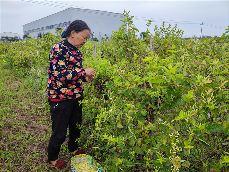 罗建明告诉记者,最近金银花进入盛花期,基地里每天都有五六百人采花,大概要持续一个月左右,吸收了权家寨村、秦丰村、太子藏村和周边村大量的剩余劳动力。