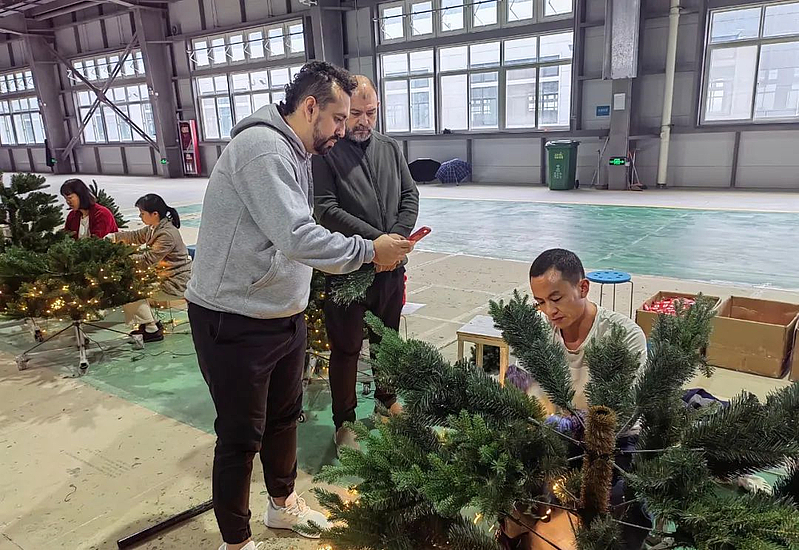 与此同时,在陕西汉元新材料科技有限公司的生产厂房内,负责加工圣诞树的机器正隆隆作响,为2024年的生产销售工作做准备。