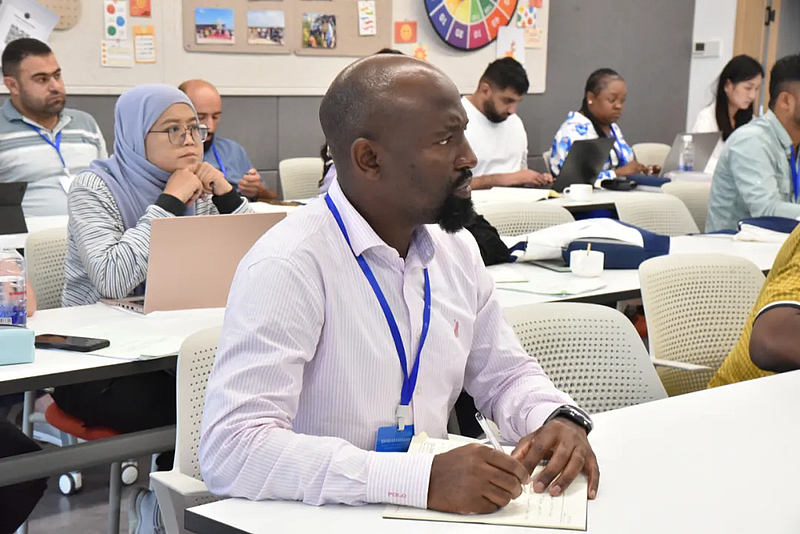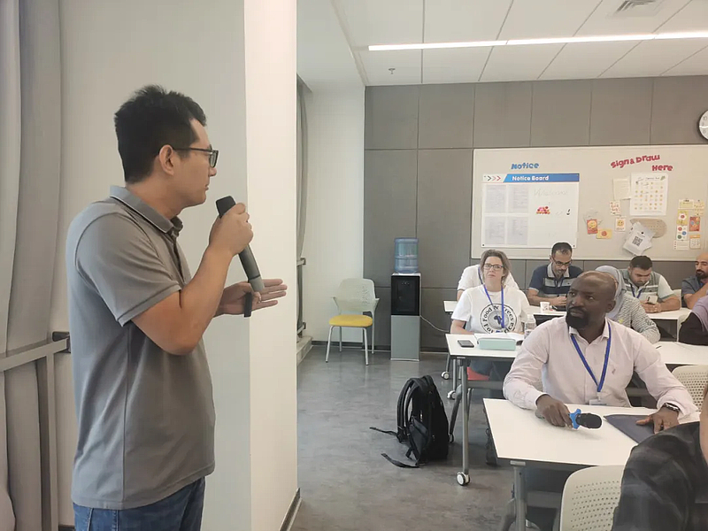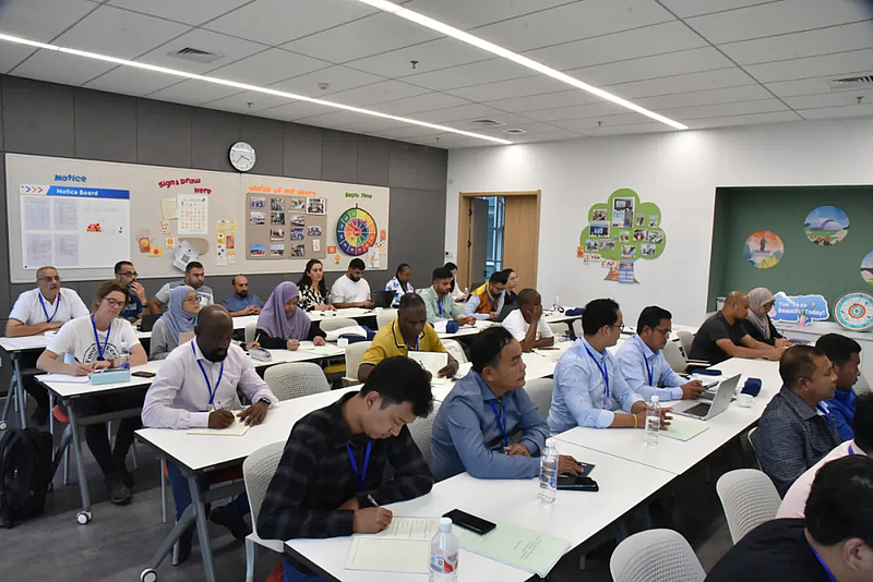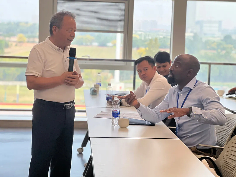 9月9日,是发展中国家农业节水灌溉技术培训班正式开班后的第5天,当天下午,记者来到马廷巴·内维尔所在的班级,只见课堂上的他正认真记录着笔记,并不时与老师交流沟通,咨询盐碱地灌溉排水技术相关问题。