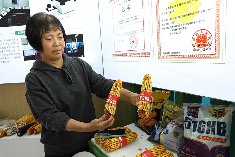 “我们翔玉998,优迪919优良杂交品种,以其高产优质多抗,适宜籽粒机收等特点,被农业部评定为‘农业主导品种’,夏播区亩产可达750公斤,春播区亩产能达到1000公斤。这几天不少客商都来咨询,还有外国人了解,都表示出了浓厚兴趣。”吉林省鸿翔农业集团鸿翔种业有限公司陕西代理杜引娣告诉记者,只要有时间,她每年都参加农高会,对企业品牌形象和影响力很有帮助。