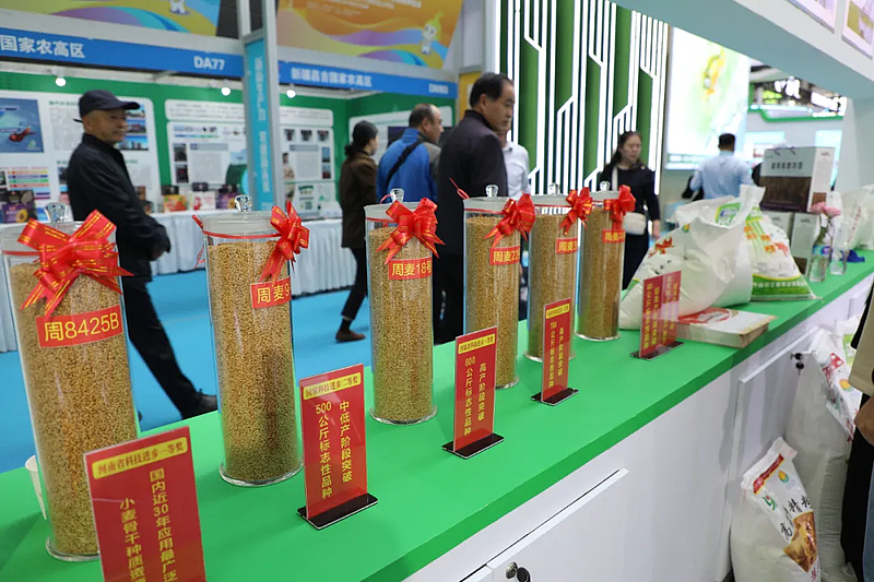走进周口农高区专题展,映入眼帘的是一罐罐周麦系列小麦品种,及其精深加工的面粉。