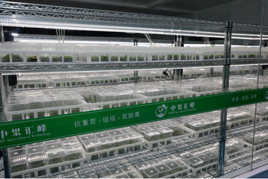 在中果汇峰的苹果良种苗木组培繁育中心,透明培养瓶内,嫩绿的苹果幼苗正茁壮生长,这些“脱毒种苗”是静宁苹果产业的“芯片”,承载着农民增收和乡村振兴的希望。