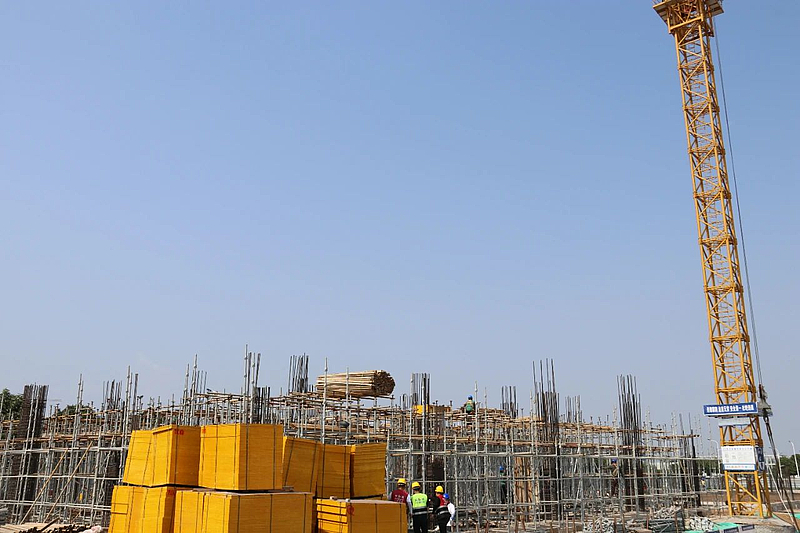 7月17日,记者来到秦创原新质农科融创中心项目建设现场看到,工人们有的正在砌基础墙,有的正在搭设支架、安装模板,现场一片热火朝天的建设场景。