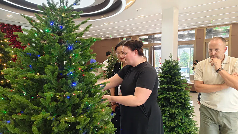 陕西龙星新材料科技有限公司是一家生产和销售节日装饰品的综合型企业。近年来,通过深耕境外市场,龙星公司的仿真树系列产品备受欢迎,真正走进了消费者心里,企业的海外知名度越来越响亮。仅2024年公司产值就达1.2亿元,销售额达1.06亿元。目前,龙星公司的主要市场集中在东欧及俄罗斯。此次考察活动有望为公司打开西欧市场提供重要契机,也为杨凌进一步深化海外经贸合作注入新活力。