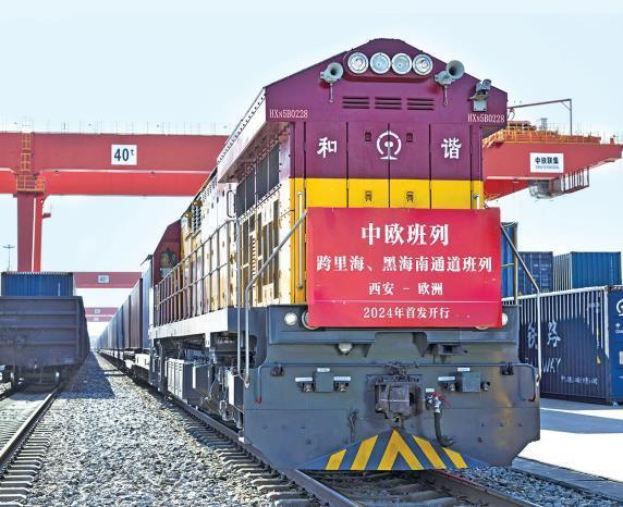 8月13日,跨里海、黑海,直达欧洲腹地的中欧班列(西安)从西安国际港站驶出(资料照片)。 本报记者 李妮摄