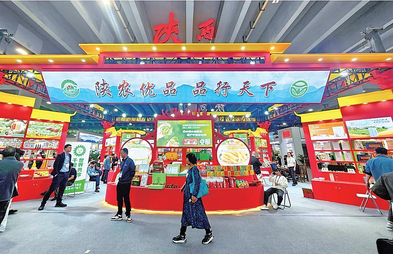 第二十一届农交会绿色有机地标农品展区内的陕西展馆(11月28日摄)。