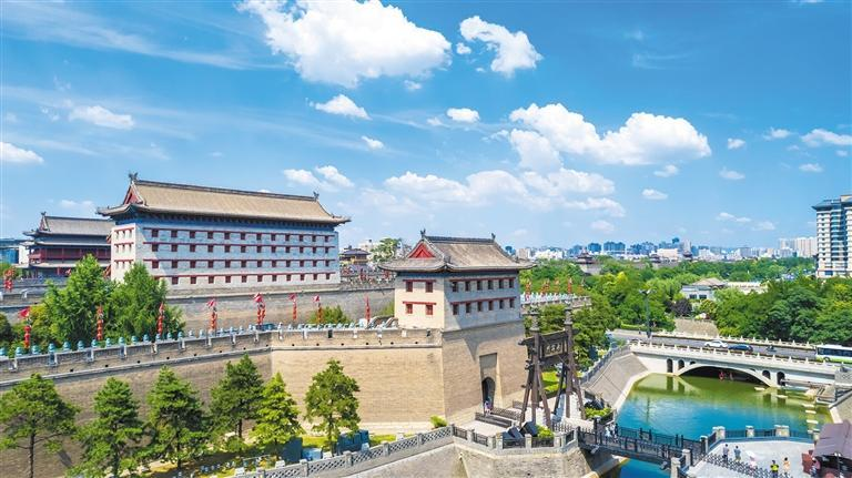 蓝天白云成为全省各地的“标配”。图为西安永宁门一角(资料照片)。 本报记者 蒲茜摄