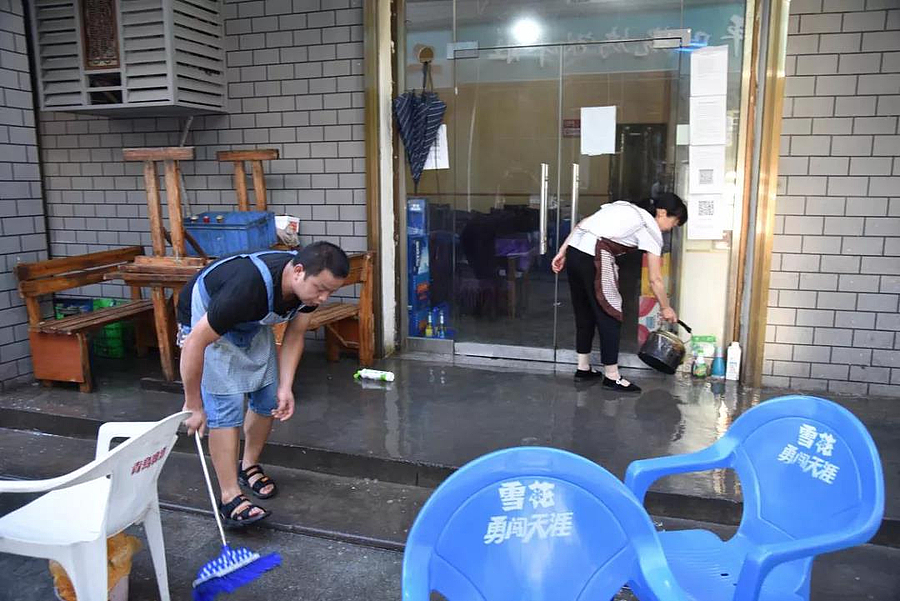 看到杨凌城乡公交有限责任公司领导带着职工风风火火地搞起了卫生,步行街的商户们也纷纷行动起来,打扫整理自家的环境卫生。