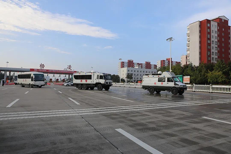 10月21日上午,伴随着清脆的警笛声,前来执行安保任务的武警陕西总队某部700名官兵抵达杨凌,并入驻农高会武警驻地,为第28届杨凌农高会保驾护航。