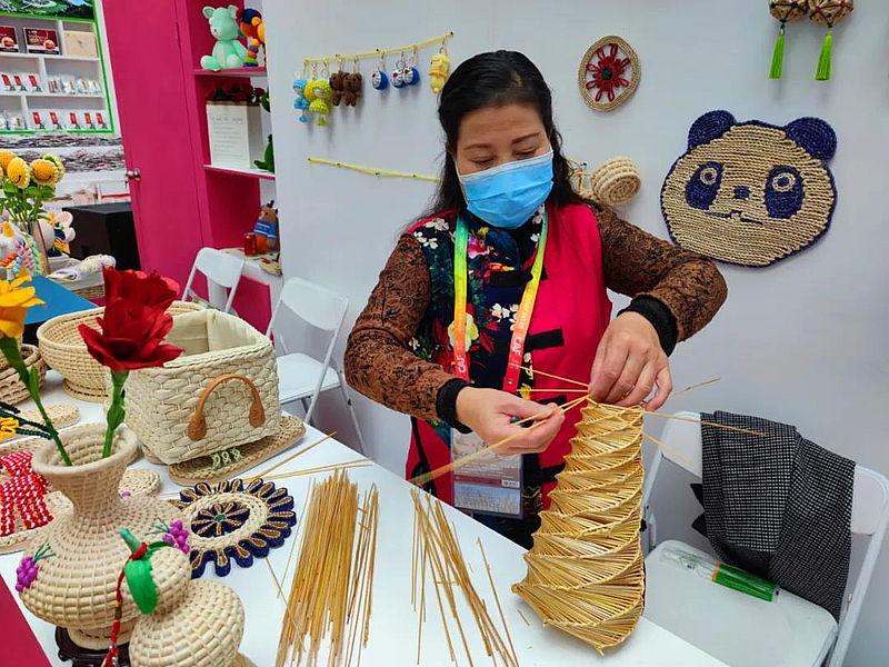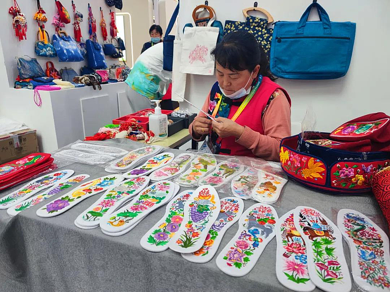 造型独特的针织小玩偶,栩栩如生的龙凤呈祥鞋垫,憨头憨脑的虎头枕……10月22日上午,随着第28届杨凌农高会开幕,三秦巧娘手工艺品暨巾帼现代农业脱贫成果展也正式亮相,一件件精美的手工艺品不仅展示出全省各地三秦巧娘的心灵手巧,也展示出现代农村妇女的新生活。