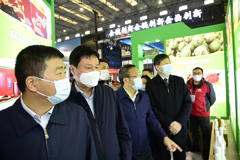 郭大为和方春明先后来到广西馆、陕西省总工会乡村振兴消费帮扶馆、海升集团种苗展示馆了解参展情况,并走访慰问了参展工作人员。