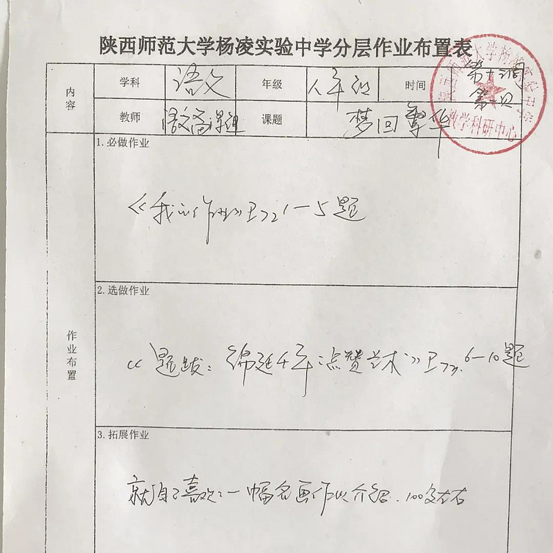 如何帮助学生“真减负”,陕西师范大学杨凌实验中学从今年9月起实施从校长、年级组长到备课组长层层包抓作业的“三级负责制”。校长负责整体把握方向,各年级组长负责把控本年级作业布置的质量及数量,备课组长则负责作业布置的具体细节,比如提倡为学生布置实践性、活动性及创新性作业,不布置重复性、机械性作业。最后层层上报,审核反馈,形成闭环。