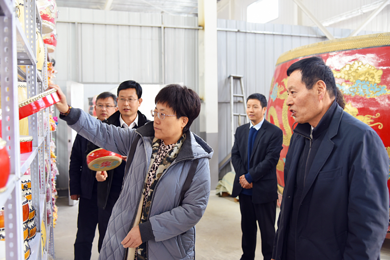 在新声锣鼓产业园,何玲参观了锣鼓生产流程,与企业负责人深入交流,了解省级非物质文化遗产项目“上川口锣鼓制作技艺”传承保护现状,询问产品研发、生产、销售和市场推广等情况。何玲指出,杨凌锣鼓生产加工历史悠久,做好这项非遗文化的保护和发展意义重大,要深入思考,认真谋划,抓好非遗资源的挖掘整理,注重文旅结合,衍生出系列文创产品,提升“杨凌锣鼓”品牌影响力,做大做强杨凌锣鼓文化产业。