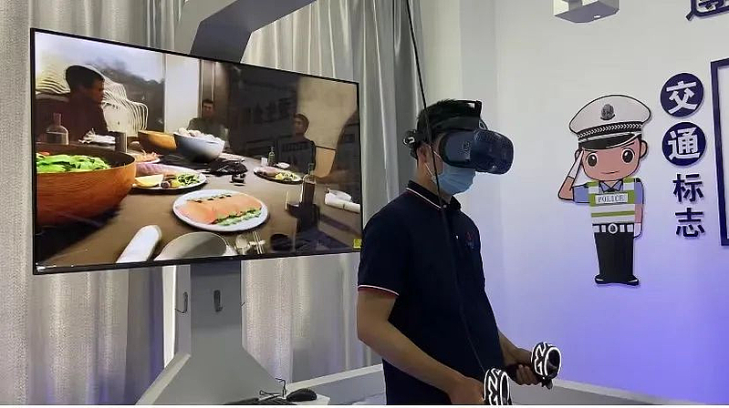 仪式结束后,志愿者来到交通安全教育基地,民警为志愿者代表戴上VR体验眼镜,让志愿者们身临其境的体验酒后驾驶、疲劳驾驶等违法行为带来的视觉失真、难辨距离、反应迟钝,最终造成严重交通事故的后果。