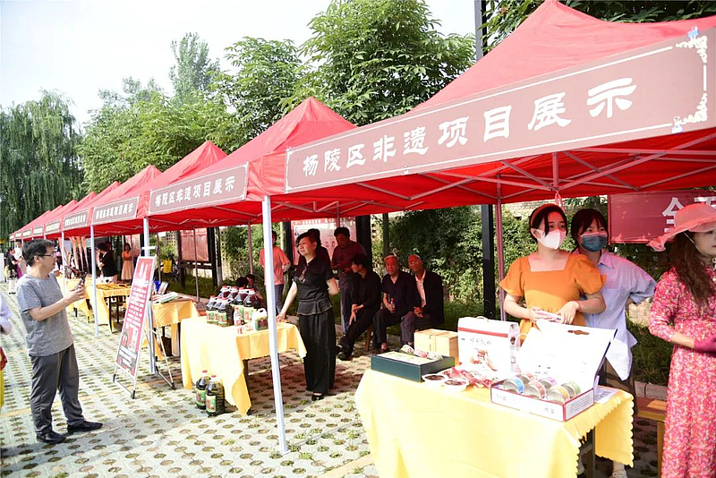 现场还通过实景展示或图片展览等方式将杨陵区34个非遗项目带到大家面前,农业合作社、农庄在现场售卖时令农产品,网红达人、电商企业也进行了直播带货,杨陵区文化旅游局还在现场进行了文化执法、文物保护等普法宣传、政策解答。据悉,活动期间还组织帐篷露营设备展示、亲子活动等丰富多彩的活动。
