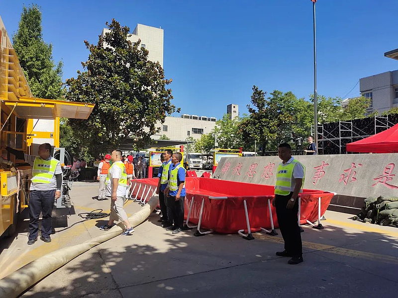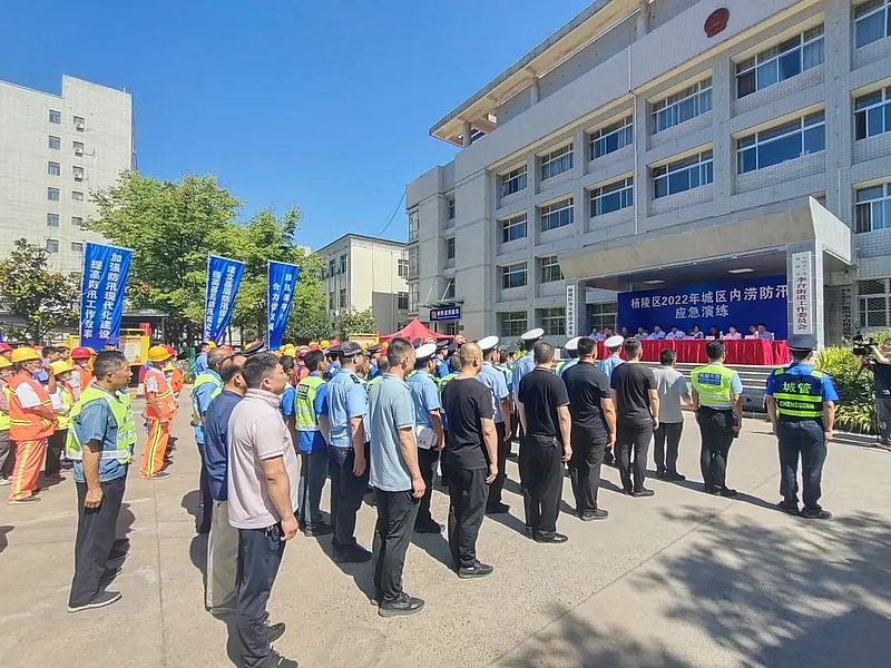 6月29日,随着现场总指挥的指令,杨陵区2022年城区内涝防汛应急演练在李台街道办门前广场拉开帷幕。