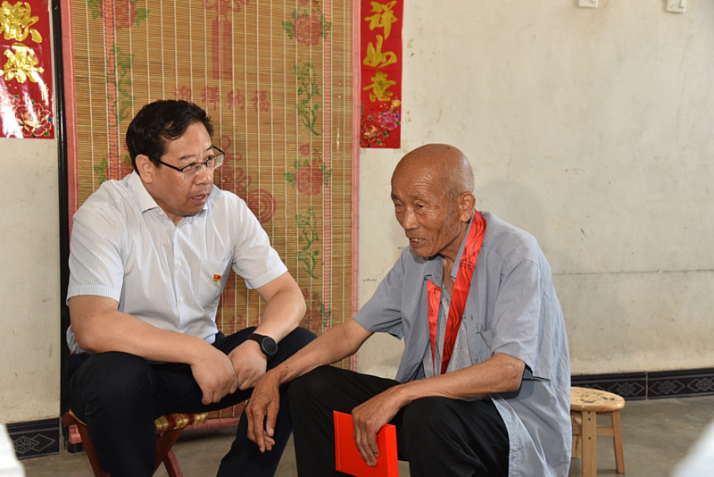 在揉谷镇太子藏村,黄思光走访慰问了老党员、2022年“光荣在党50年”纪念章获得者朱富权。朱富权今年81岁,1972年4月入党,至今已光荣在党50年。