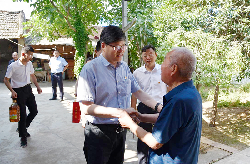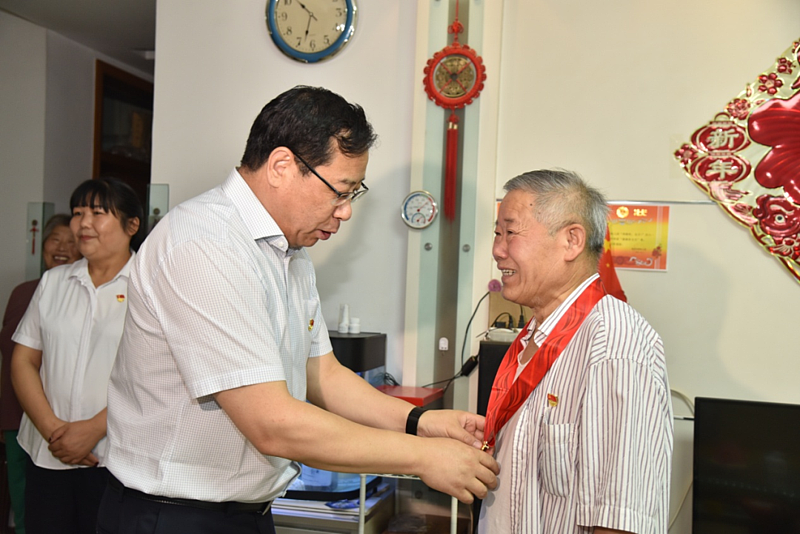 在李台街道田园居小区,黄思光慰问了老党员、2022年“光荣在党50年”纪念章获得者关玉祥。关玉祥今年72岁,1971年3月入党,至今已光荣在党50年,2010年从华秦农牧公司退休,和老伴两人生活。