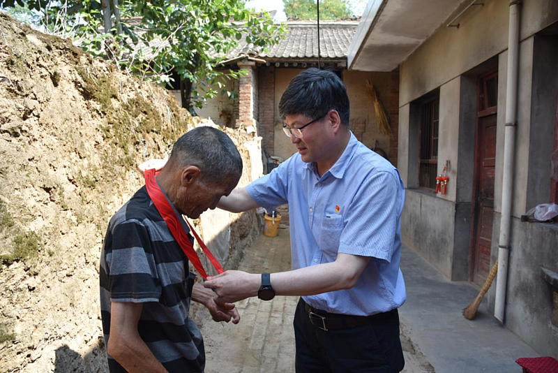 在杨陵街道下川口村,史高领看望慰问了老党员、2022年“光荣在党50年”纪念章获得者朱永奇。朱永奇今年74岁,1972年2月入党,至今已光荣在党50年,主要经济来源靠两个儿子在杨凌的工地打零工维持。