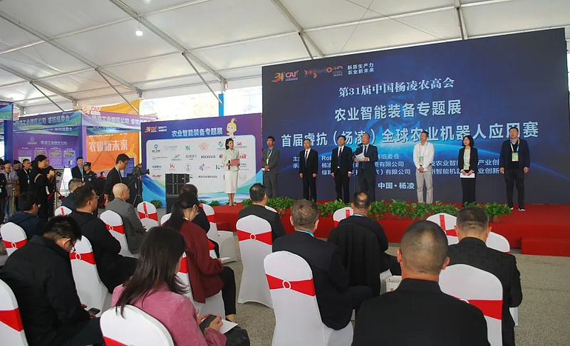 10月25日,第31届杨凌农高会农业智能装备专题展暨首届睿抗(杨凌)全球农业机器人应用赛,在农高会C馆南广场开幕。杨凌示范区党工委委员、组织部部长田晓炜致辞并宣布比赛开始。
