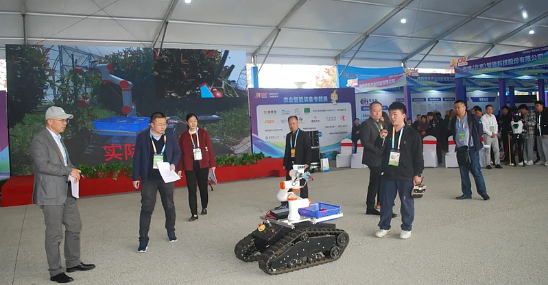 农业智能装备专题展暨首届睿抗(杨凌)全球农业机器人应用赛以“智慧强农 装备未来”为主题,旨在展示国内外农业智能装备领域的最新成果和技术,推动农业机器人技术的创新和应用,促进农业装备智能化发展。遨博(北京)智能科技股份有限公司、上海卓益得机器人有限公司、杨凌葡园智人、杨凌棚掌柜信息科技有限责任公司、苏州极目机器人科技有限公司、智蜂机器人等40余家农业智能装备企业及西安交通大学、西北工业大学、西北农林科技大学等10余家科研院校参展。