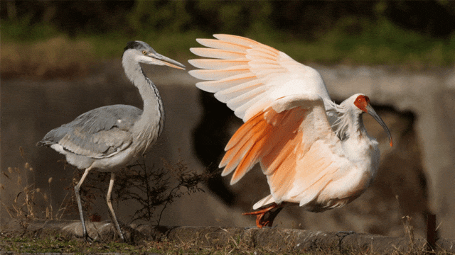 据了解,朱鹮生活在温带山地森林和丘陵地带,大多邻近水稻田、河滩、池塘、溪流和沼泽等湿地环境地带。喜欢栖息于海拔1200-1400米的疏林地带的高大的树上。
