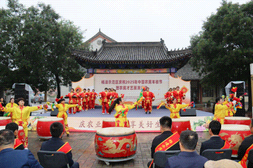 秋风送爽、五谷飘香!9月23日上午,杨陵区五泉隋唐小镇热闹非凡,杨凌示范区庆祝2025年中国农民丰收节暨农民才艺展演活动火热开场,大家载歌载舞,共庆丰收喜悦。