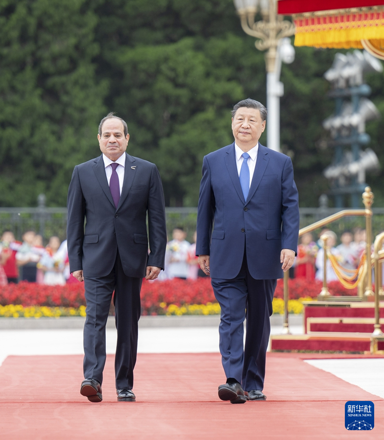 5月29日下午,国家主席习近平在北京人民大会堂同来华出席中国-阿拉伯国家合作论坛第十届部长级会议开幕式并进行国事访问的埃及总统塞西举行会谈。这是会谈前,习近平在人民大会堂东门外广场为塞西举行欢迎仪式。新华社记者 丁海涛 摄
