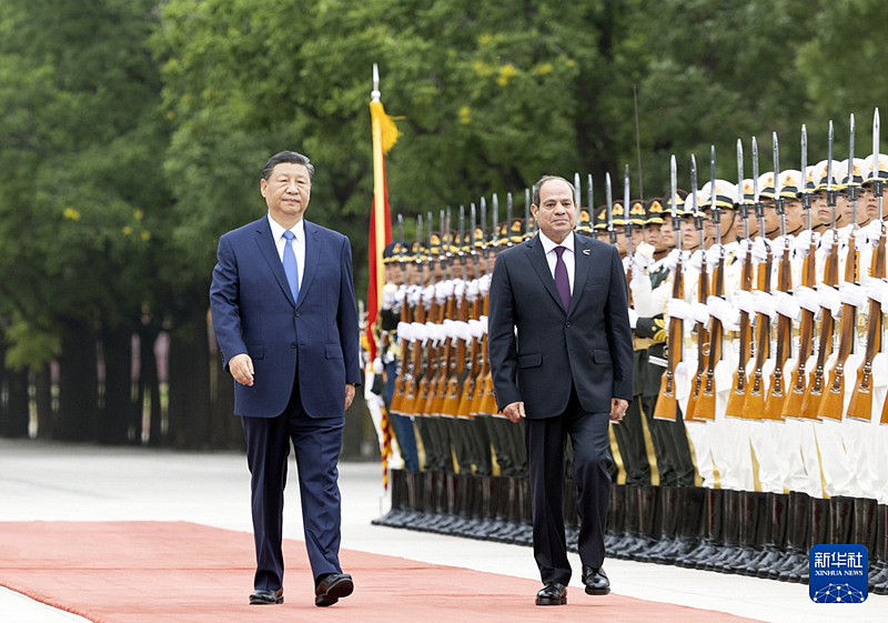 5月29日下午,国家主席习近平在北京人民大会堂同来华出席中国-阿拉伯国家合作论坛第十届部长级会议开幕式并进行国事访问的埃及总统塞西举行会谈。这是会谈前,习近平在人民大会堂东门外广场为塞西举行欢迎仪式。新华社记者 翟健岚 摄