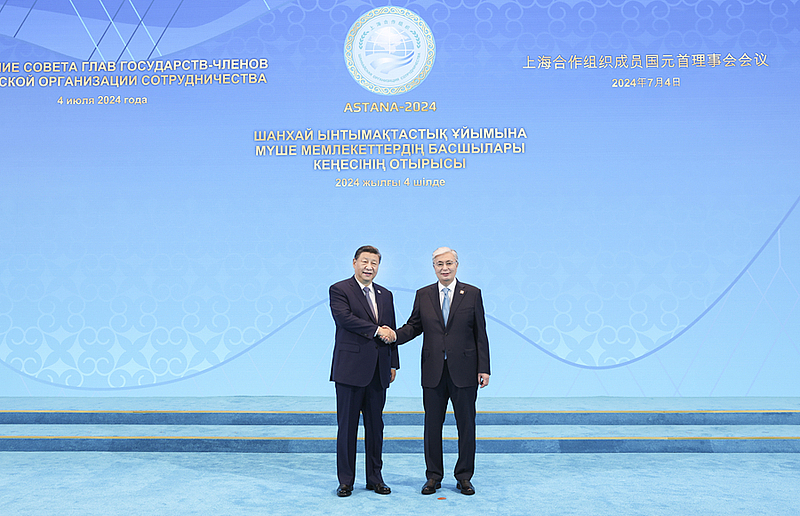 当地时间7月4日上午,国家主席习近平在阿斯塔纳独立宫出席上海合作组织成员国元首理事会第二十四次会议。新华社记者 谢环驰 摄