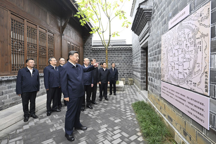 10月17日至18日,中共中央总书记、国家主席、中央军委主席习近平在安徽考察。这是17日下午,习近平在安庆桐城市六尺巷考察。新华社记者 燕雁 摄