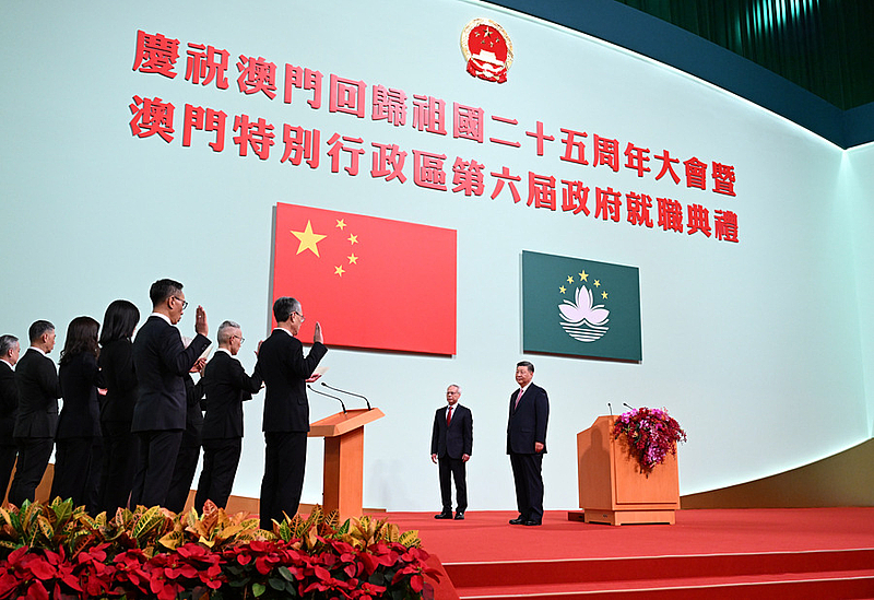 新华社澳门12月20日电 庆祝澳门回归祖国25周年大会暨澳门特别行政区第六届政府就职典礼20日上午在澳门东亚运动会体育馆隆重举行。中共中央总书记、国家主席、中央军委主席习近平出席并发表重要讲话。他指出,澳门回归祖国25年来,具有澳门特色的“一国两制”实践取得巨大成功,澳门发生翻天覆地的变化,国际影响力大幅提升。他希望,新一届澳门特别行政区政府团结带领社会各界,抢抓机遇、锐意改革、担当作为,更好发挥“一国两制”制度优势,不断开创“一国两制”事业高质量发展新局面。