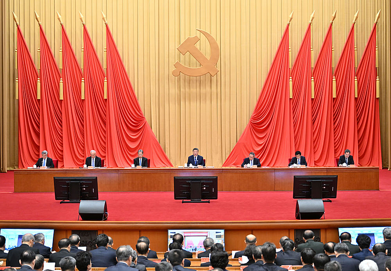 1月6日,中共中央总书记、国家主席、中央军委主席习近平在中国共产党第二十届中央纪律检查委员会第四次全体会议上发表重要讲话。李强、赵乐际、王沪宁、蔡奇、丁薛祥、李希出席会议。新华社记者 岳月伟 摄