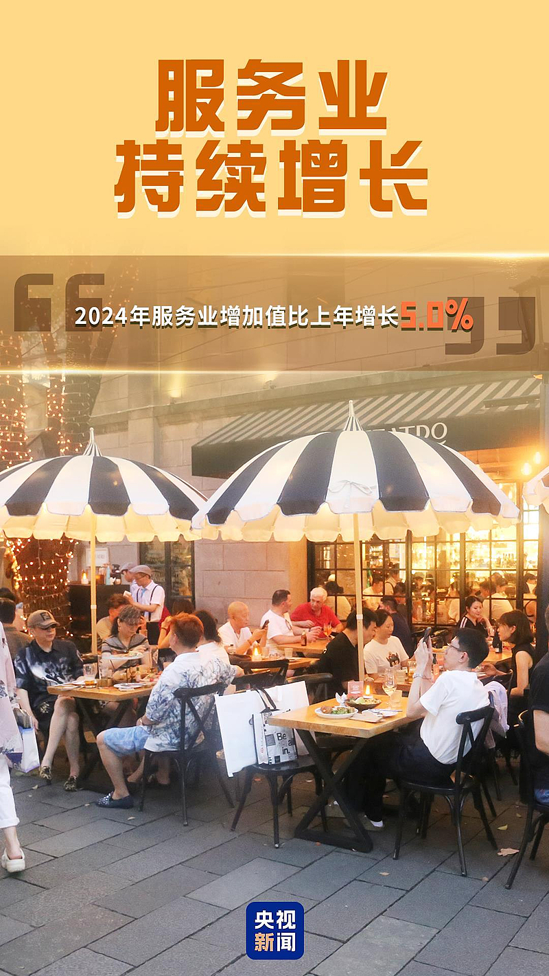 2024年,服务业增加值在GDP中的比重提高到约56.7%,信息传输、软件和信息技术服务业增加值增长10.9%,领跑服务业。服务业蓬勃发展可以更好满足人民美好生活的需要,也创造出更多新需求和新岗位,光是2024年发布的新职业就有19项。